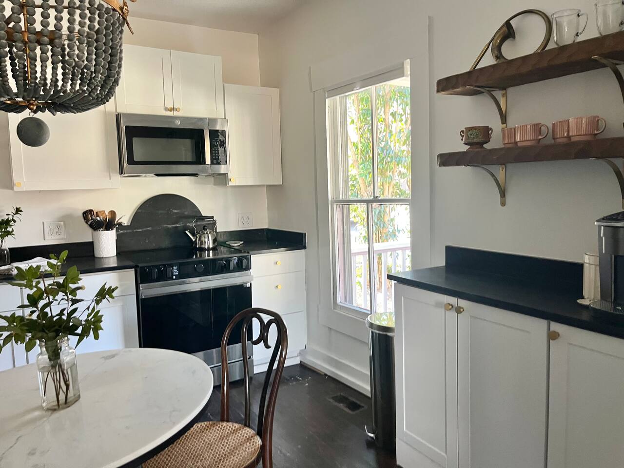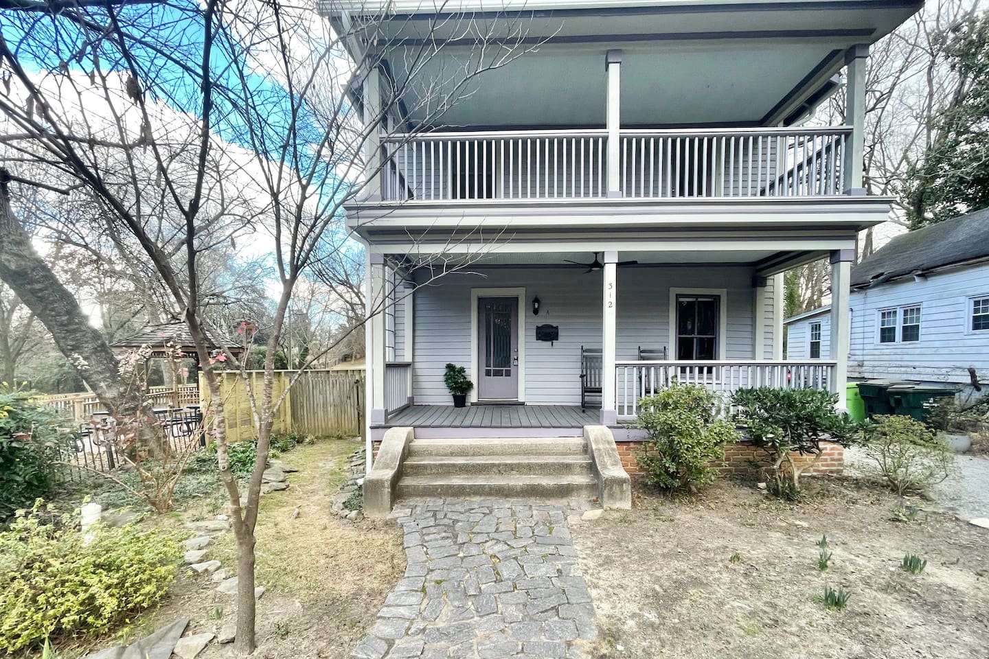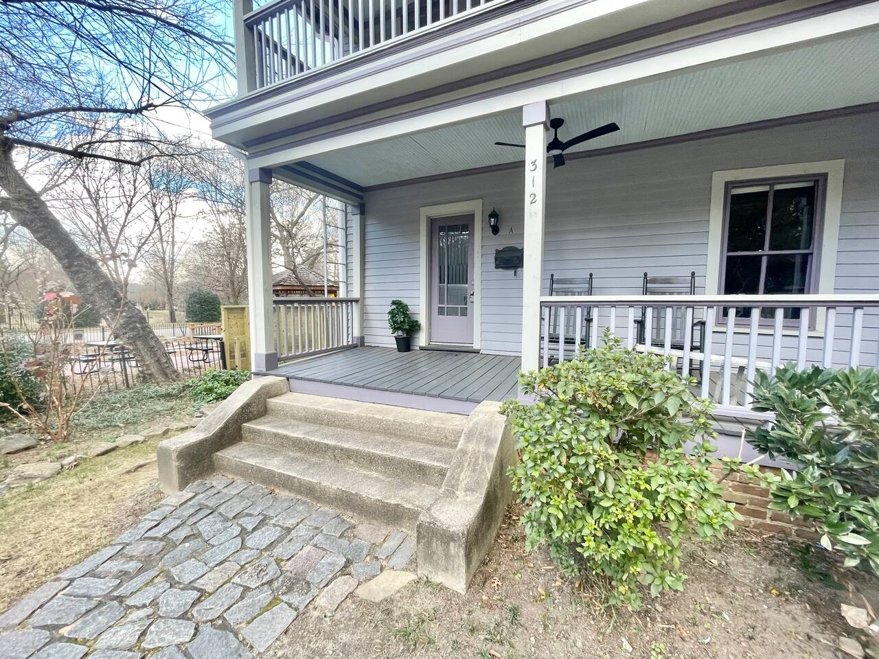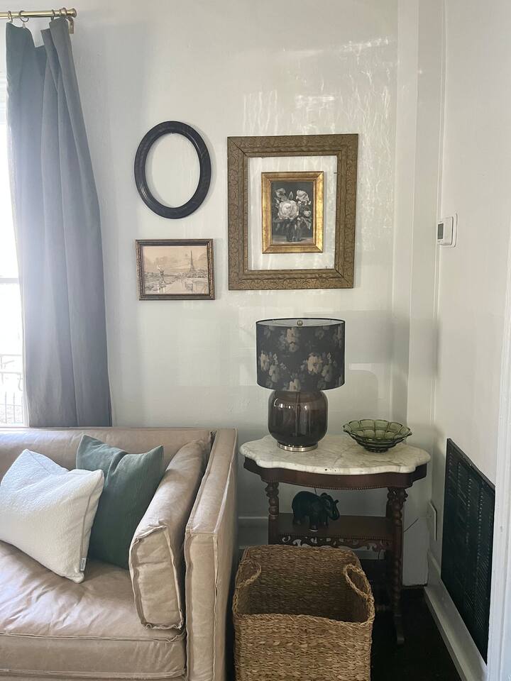 The Porch Parlor is a charming one bedroom, first floor apartment with rocking chair front porch perfect for coffee or cocktails! This 1918 character and light filled home has ten foot ceilings, 2 charming ornamental fireplaces, a large open kitchen and living space along with a huge king bedroom suite with a clawfoot tub and walk-in closet. Be in the heart of Oakwood, walk to Person Street, take a stroll through the Historic Oakwood cemetery, & bring your fur baby! The Porch Parlor is waiting.