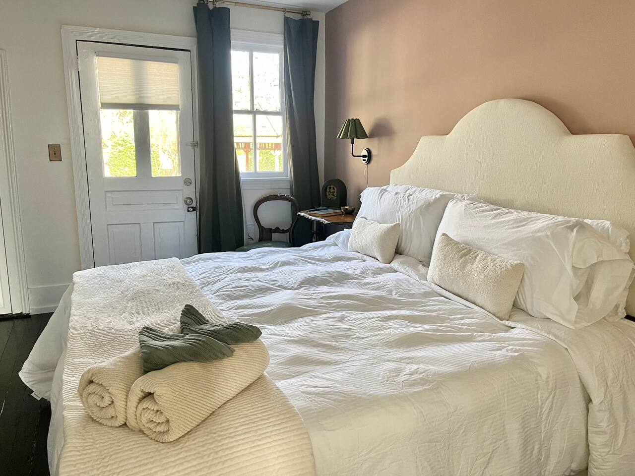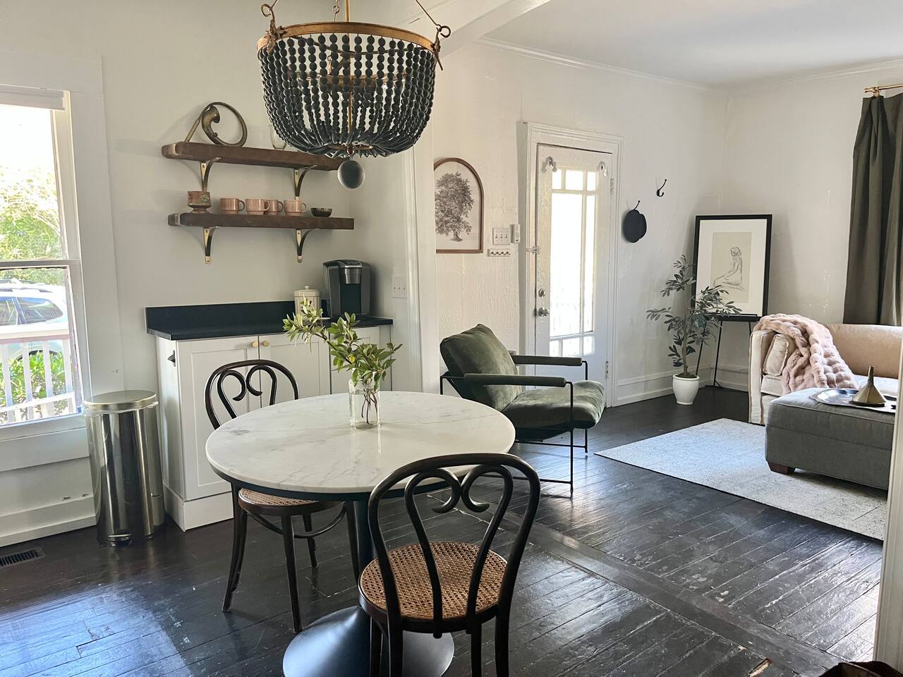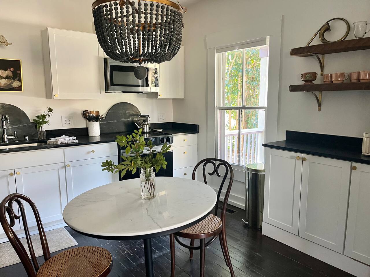 The Porch Parlor is a charming one bedroom, first floor apartment with rocking chair front porch perfect for coffee or cocktails! This 1918 character and light filled home has ten foot ceilings, 2 charming ornamental fireplaces, a large open kitchen and living space along with a huge king bedroom suite with a clawfoot tub and walk-in closet. Be in the heart of Oakwood, walk to Person Street, take a stroll through the Historic Oakwood cemetery, & bring your fur baby! The Porch Parlor is waiting.