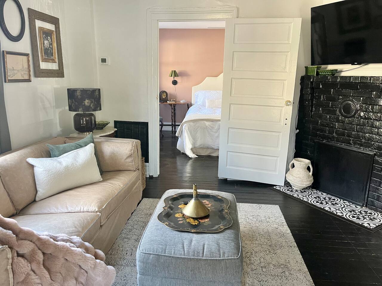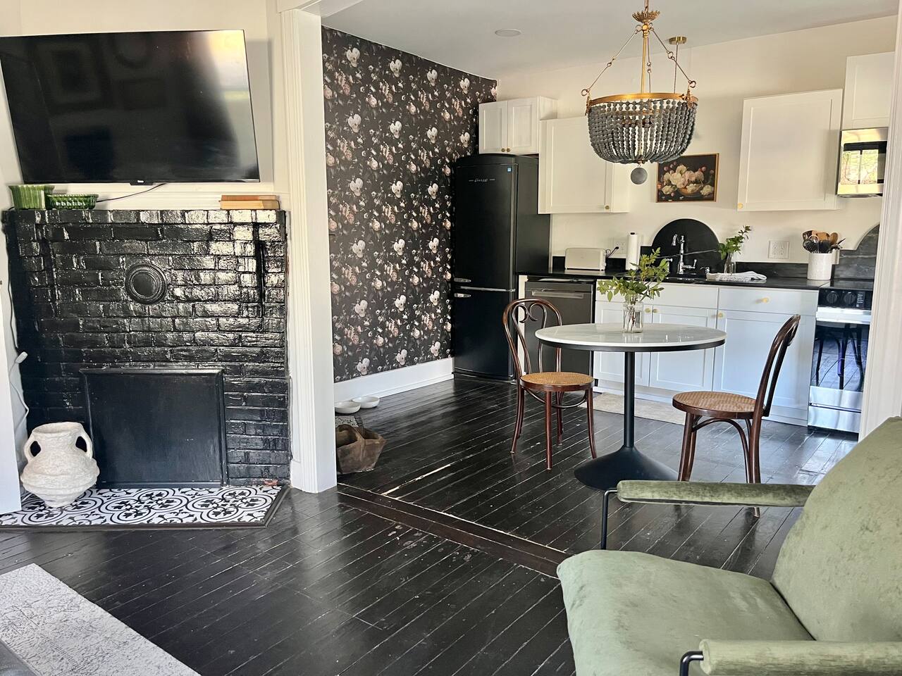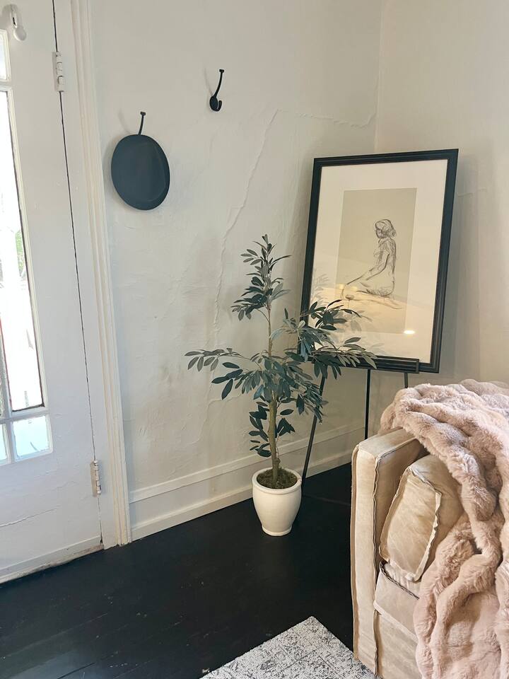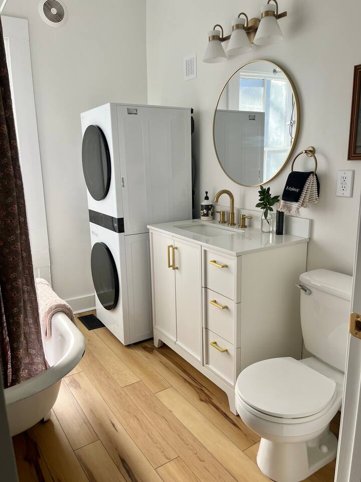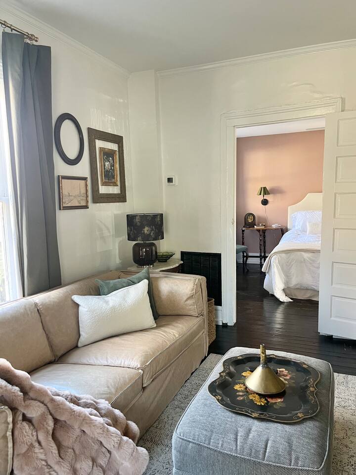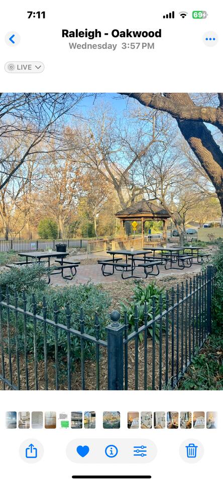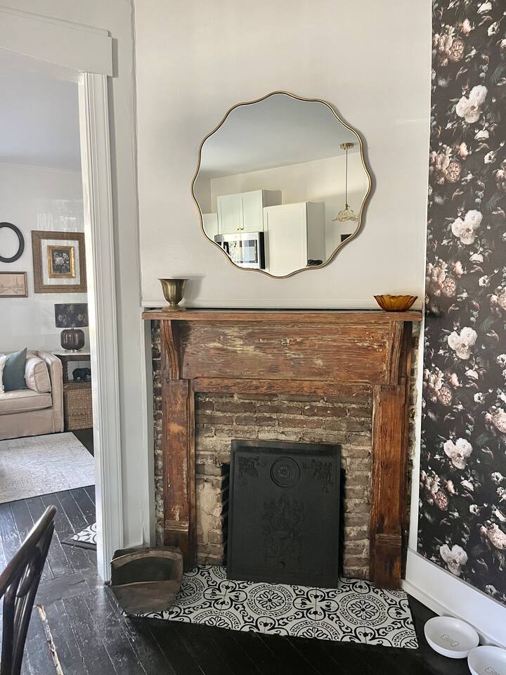 Enjoy this first floor one bedroom, charming apartment in the heart of Historic Oakwood. This apartment has great workability and is centrally located to all that Oakwood and downtown Raleigh have to offer.! Across the street from the Oakwood cemetery, you will find the Porch Parlor! Situated next to a community garden this charming street and home will be adored by everyone. The historic preservation of this building has been wonderful! Stepping onto the porch, you will want to just sit and relax. Enjoy your morning coffee or a cocktail in the evening. As you enter the home you will love the 10 foot ceilings , incredible light, woodwork and more, along with a large open living space. The darling kitchen has been fully renovated with all brand, new appliances and cabinets and countertops. Enjoy the coffee bar and the cute dining area along with the ornamental fireplace in the kitchen. In the living room, you will have another fireplace adding charm , and a large smart TV, Wi-Fi with a comfy seating area for enjoying time together and room for guests! Off of the living room is the large Private master suite, a King bed with original clawfoot tub, washer and dryer, walk in closet , smart TV and ceiling fan. There’s Google fiber so you will be able to work comfortably in the space or just enjoy the space for a quick trip to Raleigh! There is also a shared backyard with the other units that is fully fenced so you can bring your fur baby or take a stroll through the neighborhood as it’s extremely walkable and very pet friendly! We are just 3 minutes away from Person Street, downtown Raleigh Moore Square! Close to red hat, theater, and Moore! 5 minutes to Mordecai, and 10 minutes to the village District, ,440 NC State and Hillsborough Ave! 15 minutes to the Lenovo Center area/ and the State fairgrounds, and Only 18-20 minutes from the airport so making this location highly desirable! As we are close to everything!