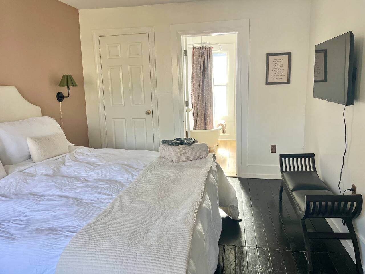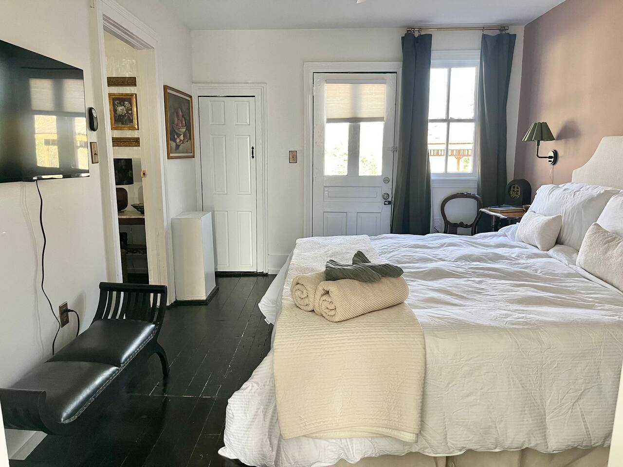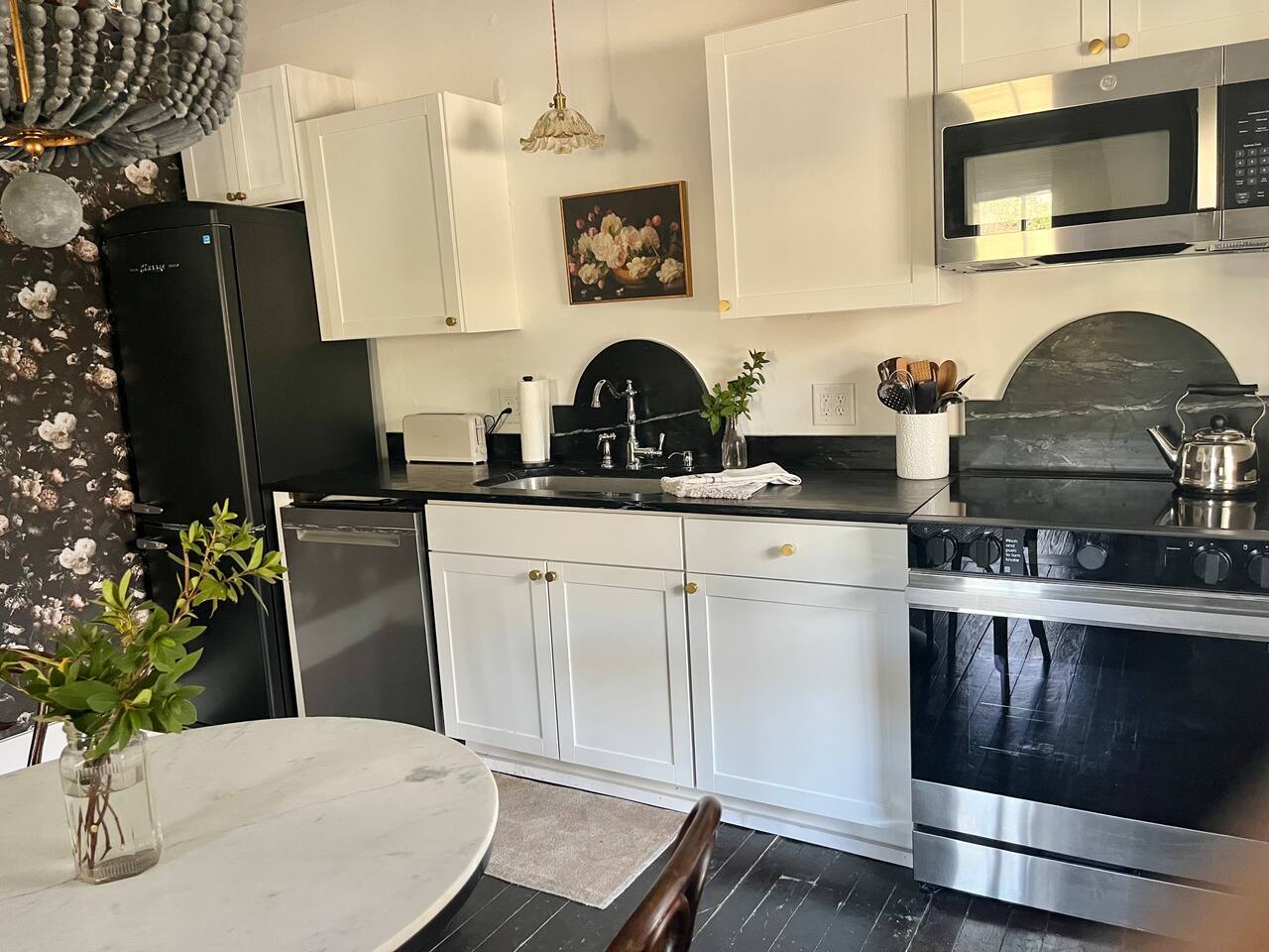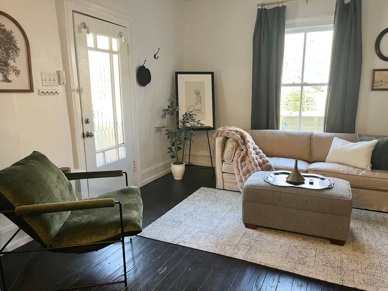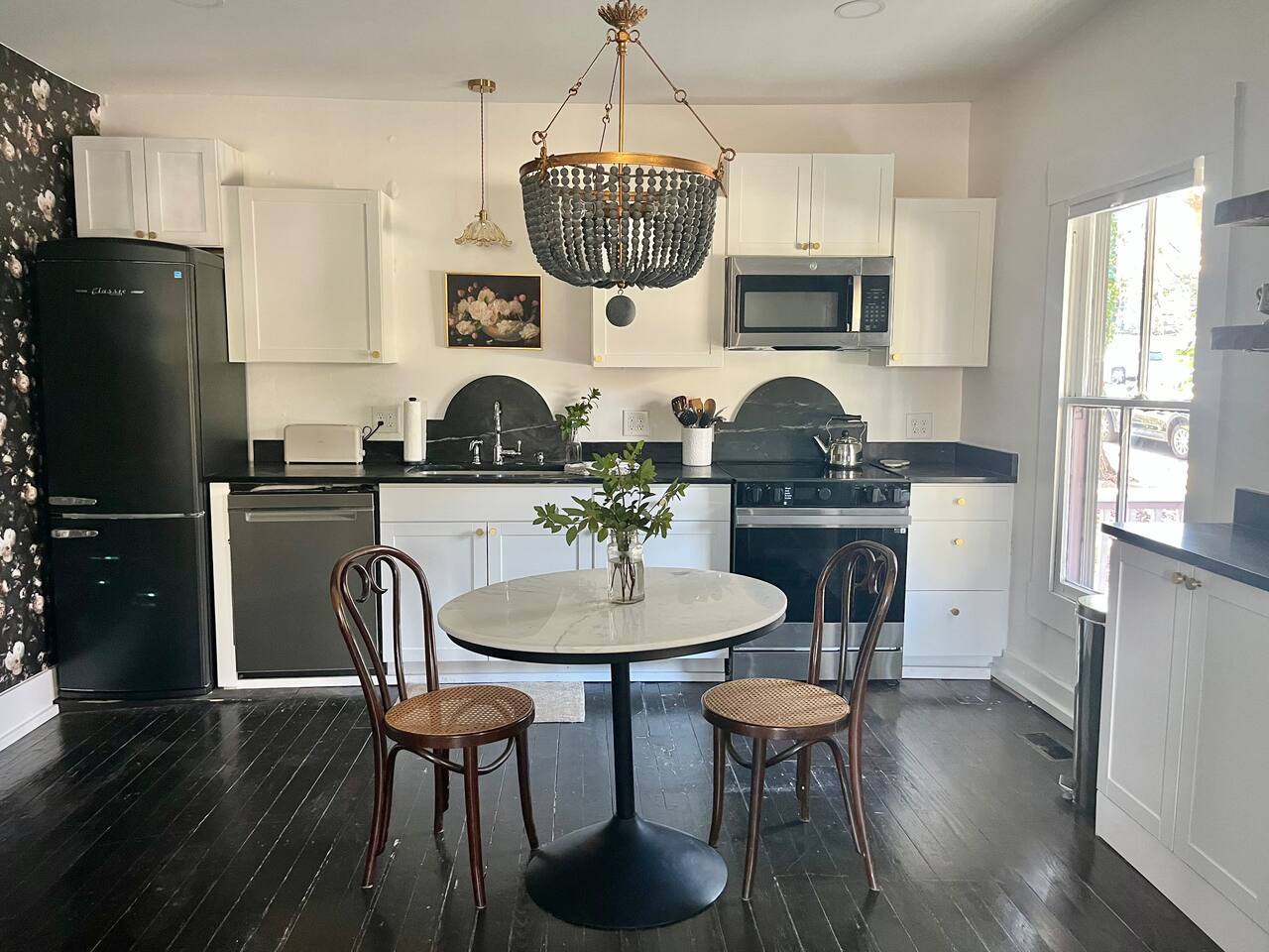 Enjoy this first floor one bedroom, charming apartment in the heart of Historic Oakwood. This apartment has great workability and is centrally located to all that Oakwood and downtown Raleigh have to offer.! Across the street from the Oakwood cemetery, you will find the Porch Parlor! Situated next to a community garden this charming street and home will be adored by everyone. The historic preservation of this building has been wonderful! Stepping onto the porch, you will want to just sit and relax. Enjoy your morning coffee or a cocktail in the evening. As you enter the home you will love the 10 foot ceilings , incredible light, woodwork and more, along with a large open living space. The darling kitchen has been fully renovated with all brand, new appliances and cabinets and countertops. Enjoy the coffee bar and the cute dining area along with the ornamental fireplace in the kitchen. In the living room, you will have another fireplace adding charm , and a large smart TV, Wi-Fi with a comfy seating area for enjoying time together and room for guests! Off of the living room is the large Private master suite, a King bed with original clawfoot tub, washer and dryer, walk in closet , smart TV and ceiling fan. There’s Google fiber so you will be able to work comfortably in the space or just enjoy the space for a quick trip to Raleigh! There is also a shared backyard with the other units that is fully fenced so you can bring your fur baby or take a stroll through the neighborhood as it’s extremely walkable and very pet friendly! We are just 3 minutes away from Person Street, downtown Raleigh Moore Square! Close to red hat, theater, and Moore! 5 minutes to Mordecai, and 10 minutes to the village District, ,440 NC State and Hillsborough Ave! 15 minutes to the Lenovo Center area/ and the State fairgrounds, and Only 18-20 minutes from the airport so making this location highly desirable! As we are close to everything!